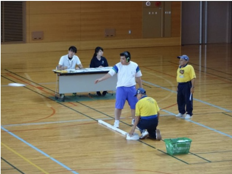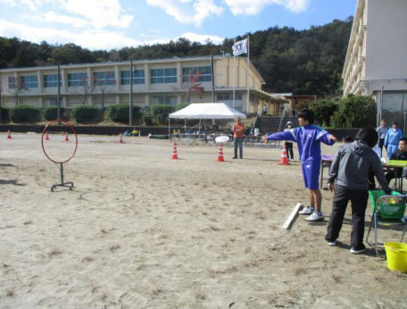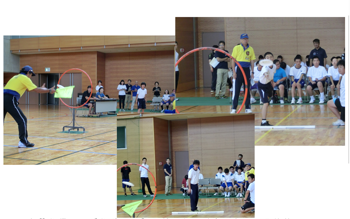 プラスチック製の円盤を、直径約90センチの輪を目がけて10十本投げる「アキュラシー競技」と、1人3投し、できるだけ遠くへ投げ距離を競う「ディスタンス競技」を、グループに分かれて、優勝・記録を目指して取り組むことができました。