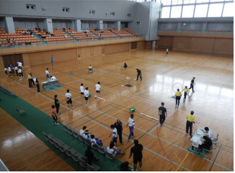 ふれあいスポーツ事業の一貫として、「岐阜県特別支援学校フライングディスク大会」が8月18日木曜日、岐阜県関市にある「関市総合体育館」(空調設備もあり、広々とした施設)にて開催されました。今年は、岐阜県内の盲学校、聾学校、特別支援学校11校が参加し、アキュラシー競技やディスタンス競技で白熱した戦いが繰り広げられました。また、今年9月23日~25日実施される第70回全国レクリエーション大会in岐阜応援イベントとして、合間を活用してスポーツの体験コーナーもあり、楽しく参加できました。