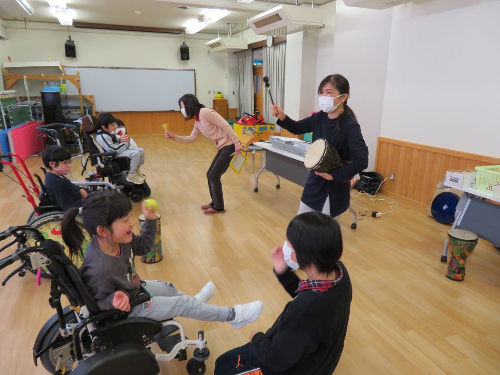 10月~12月に、各学校で、音楽療法士の方を講師に、リトミック交流会が行われました。今年度は9校で実施し、各学校の児童生徒の実態に合わせた活動が行われました。普段あまり馴染みのない楽器を触ったり、音楽に合わせて身体を揺らしたりと、どの学校もとても楽しそうに活動している様子が見られました。