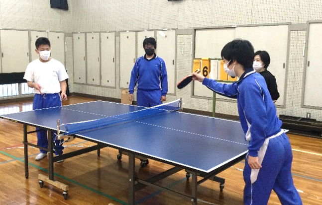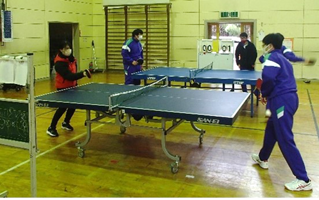 今年度も新型コロナウイルス感染症の影響で卓球大会(ふれあいスポーツ大会)は中止となりました。そこで、何とか日頃の練習の成果を発揮し、生徒たちが活躍できる場を設定したいという願いから、「校内卓球大会」を各校で実施することとなりました。学校行事や部員の体調不良等で実施できなかった学校もありますが、のべ13校、137人の生徒が参加することとなりました。どの学校の顧問からも生徒たちがいきいきして試合に臨んでいた。「練習では得られない経験ができた。」など、前向きな感想を耳にすることができました。
