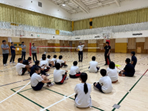 毎年2回、岐阜県内の特別支援学校の児童生徒に、バレーボール競技の普及を目的に開催しております。今回は、大垣特別支援学校からの参加者もあり、全くの初心者ではありましたが、笑顔でプレーする姿もありました。基本的なルールの講習とパスやレシーブ、スパイクなどの基本的な技術の練習を中心に進め、最後には引率の先生方も参加して交流試合も行いました。